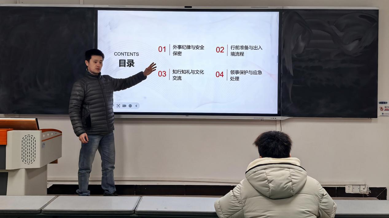培训过程中,高峰围绕外事纪律与安全保密、行前准备、当地文化习俗、及领事保护与应急处理要点等内容展开详细讲解,此次任务是学校践行“职教出海”战略的重要实践。胡羿表示将认真落实培训要求,提前做好教学预案,精准对接当地学员需求,高质量完成课程授课与标准输出任务,助力中摩职业教育交流互鉴。此次行前培训的开展,为外派教学任务的顺利推进筑牢了基础,也为学校进一步拓展国际职教合作、提升国际化办学水平积累了经验。